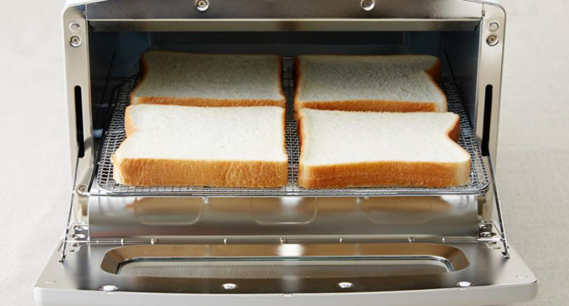 首先是裸烤,这种烤法无需任何烤盘应用,一般用于烤吐司和烤高庄馒头等已熟的食材进一步加工的操作。这种烤法温度和时间通常不宜过高,时间不宜过长(160℃5分钟左右),通过千石阿拉丁AET-G15CA系列烤箱(多士炉)的加热特性很容易在短时间内快速脆化表面并将水分锁在食物内部,这就是外脆内软的原因。