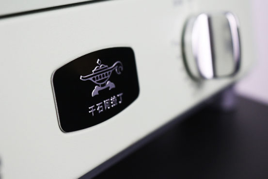 两个旋钮之间是千石阿拉丁的品牌LOGO,名为阿拉丁,LOGO则以神灯呈现,神灯里的精灵带来了一个缤纷绝伦的世界,就像美食会开启一段神奇美好的生活。